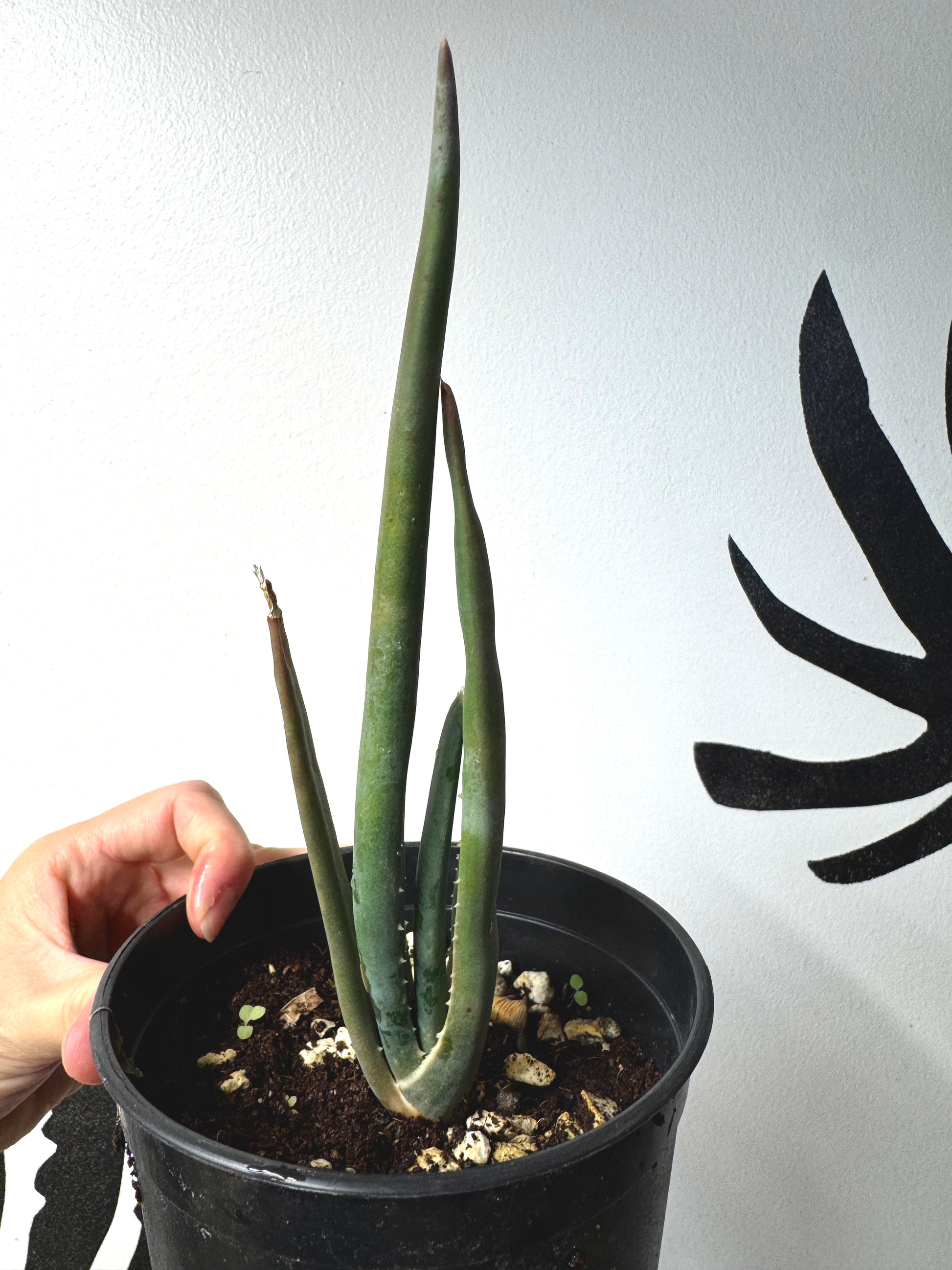 Aloe suzannae is one of the rarest aloes in cultivation, native to Madagascar and highly sought after for its unusual form and slow-growing, architectural presence. Known for its thick, upright leaves and tree-like growth habit, this species is a standout specimen for serious collectors.